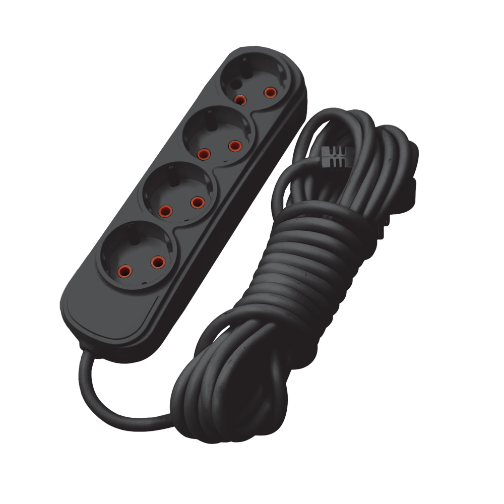 MULTIPLUG FOURFOLD 5M H05VV-F 3G1.5MM2, BLACK