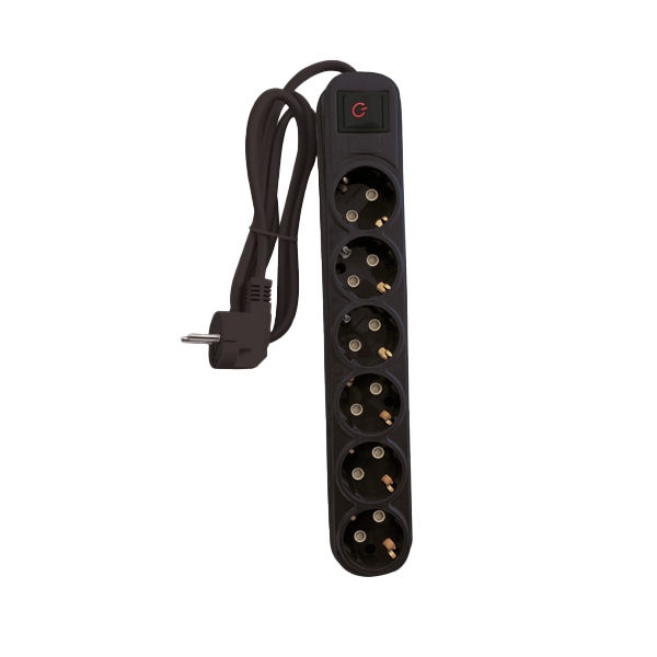 MULTIPLUG SIXFOLD 2M H05VV-F 3G1.5MM2, BLACK