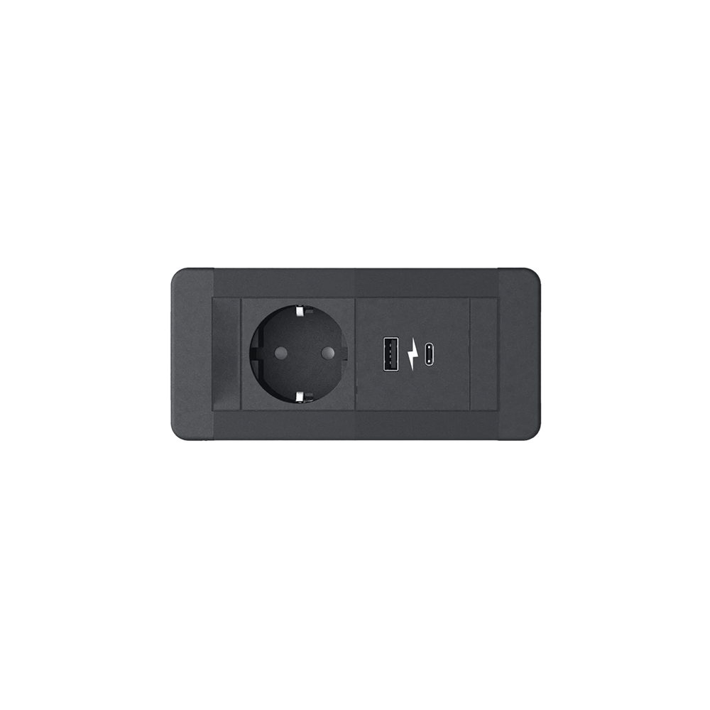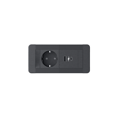 SLIM FRAME 1xSHUKO SOCKET+1xUSB A/C 20W, BLACK